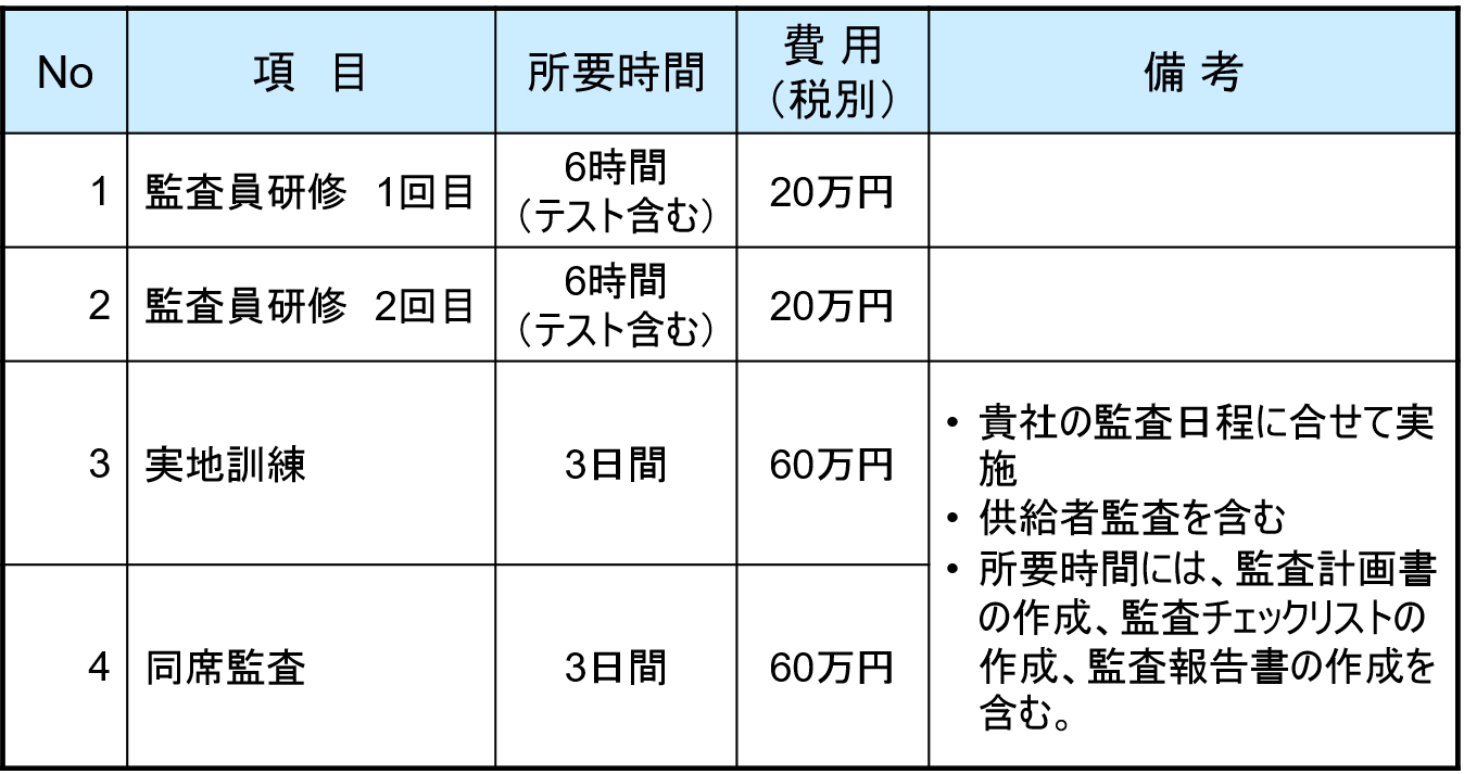 - 当社監査員と同席監査を実施し、同レベルの監査報告書が作成できることを確認する。