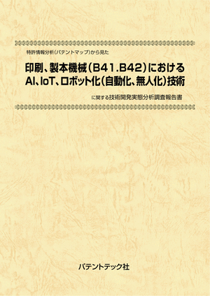 本調査報告書は、「印刷、製本機械(B41.B42)におけるAI、IoT、ロボット化(自動化、無人化)技術」の国内出願日:2009年1月~2020年8月に出願された公開特許について、検索、収集した。